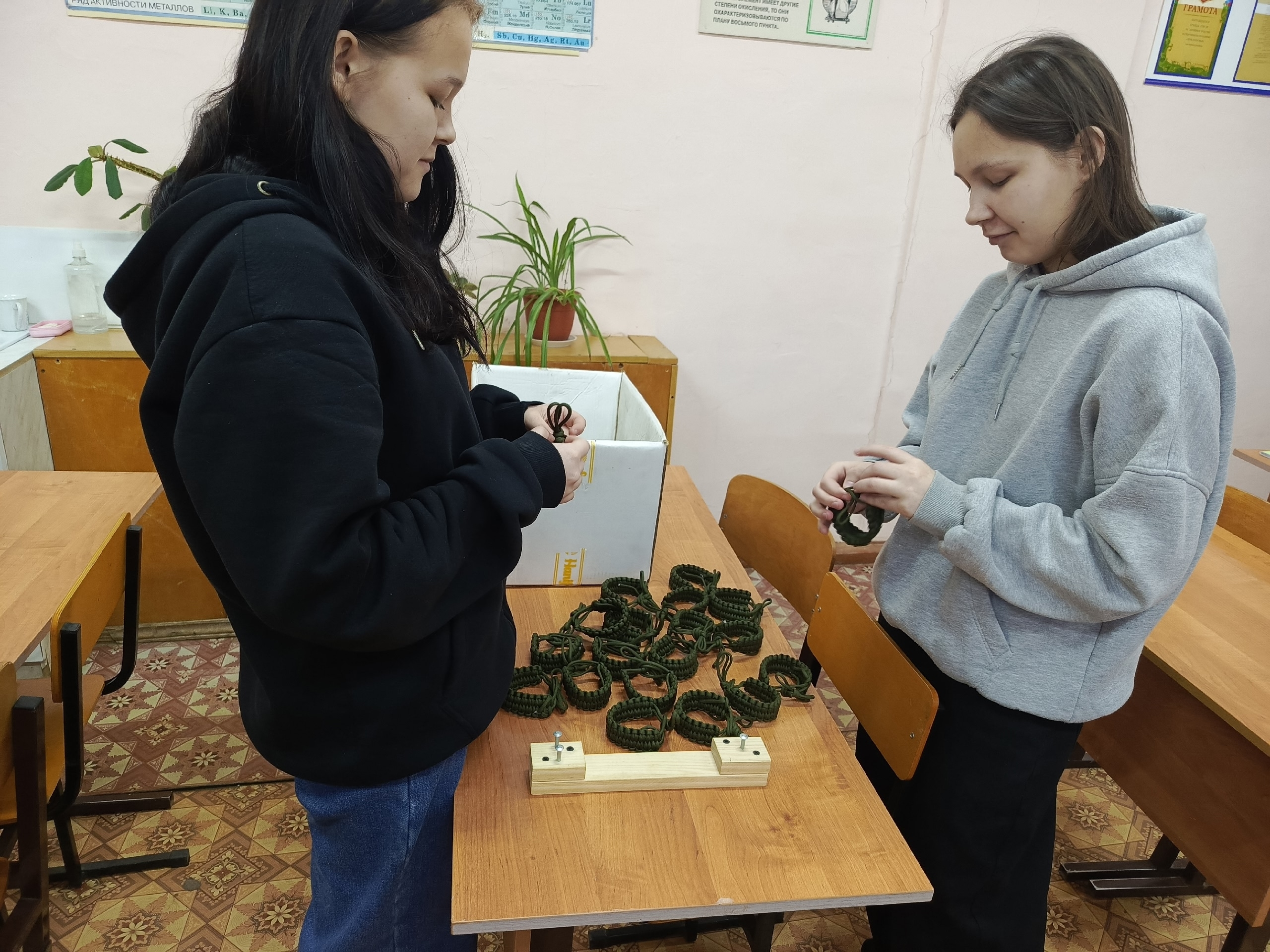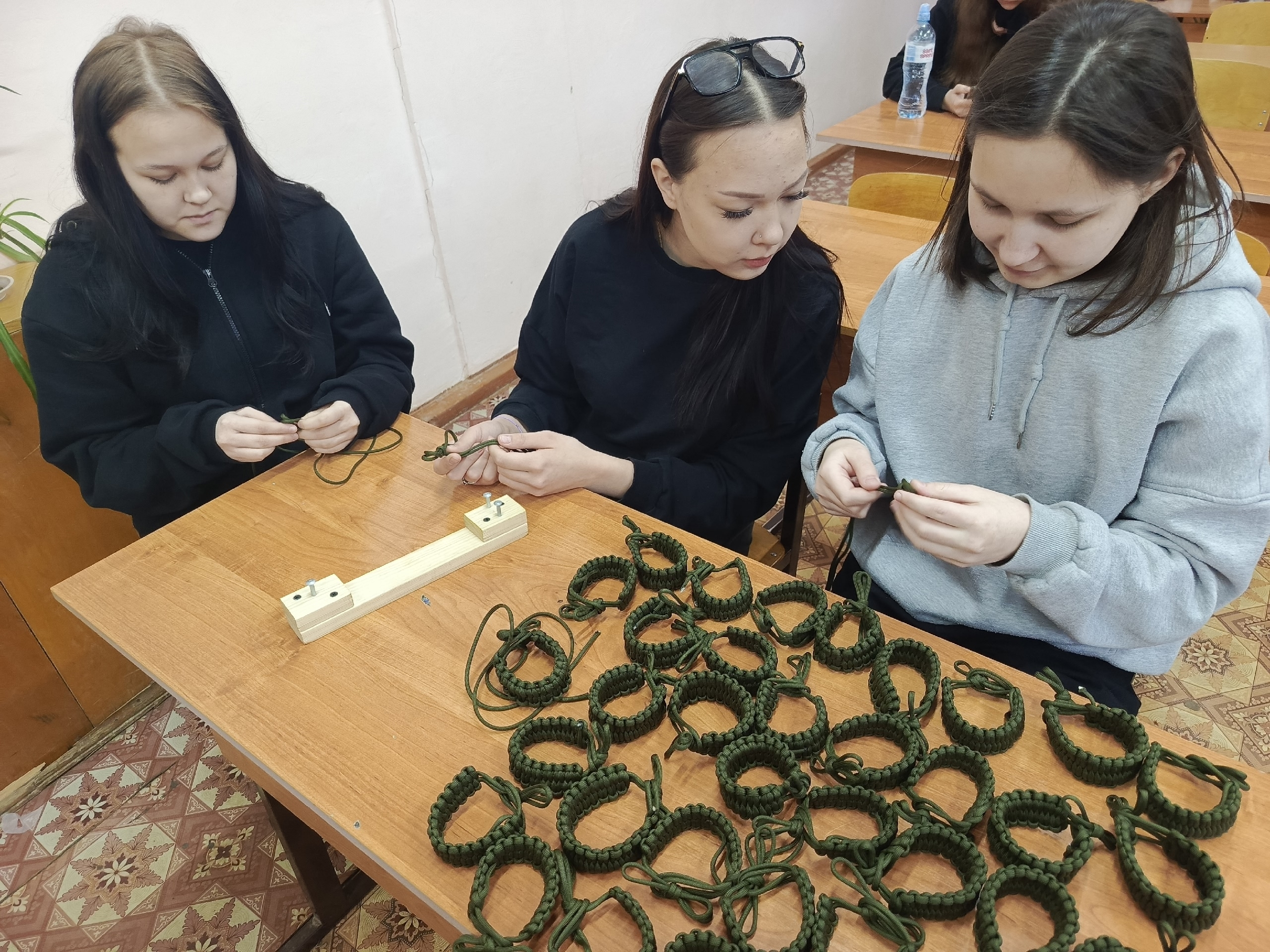 Каждый узелок — это поддержка, каждый браслет — это вклад в общую победу. Наши студентки — Файрузова Виктория, Ларина Инга и Данилова Ксения — в свободное от учебы время занимаются очень важным делом. Девушки плетут «браслеты выживания» для отправки бойцам в зону СВО.