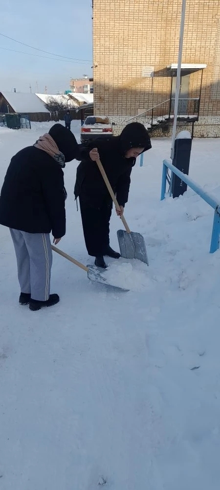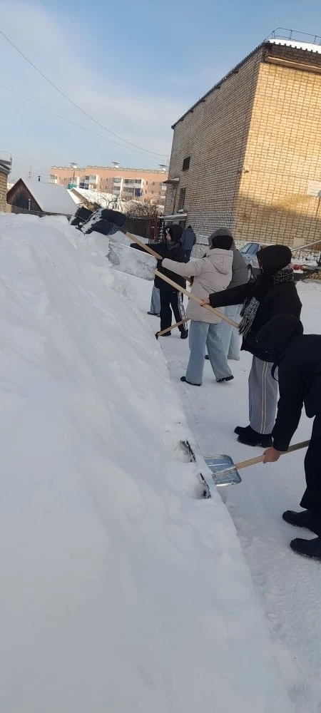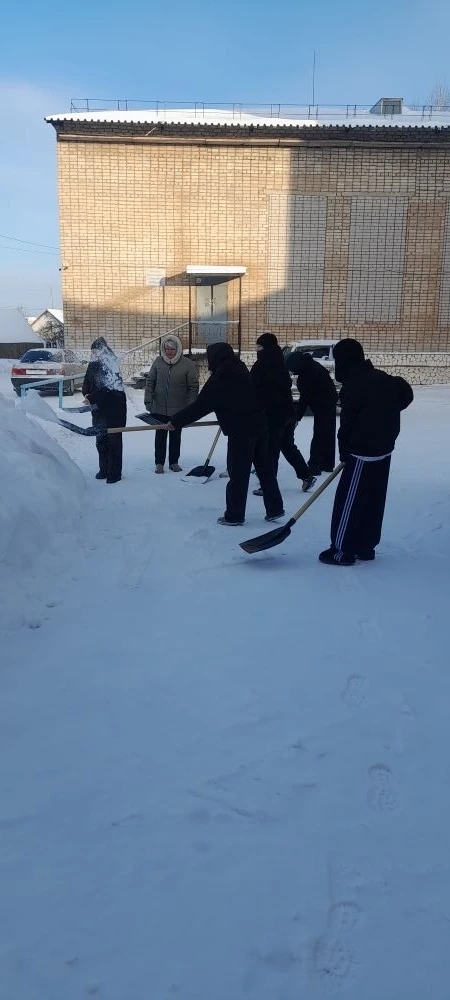 они вышли на заснеженный субботник. Ребята активно расчищали дорожки, входы в здания и прилегающие территории,
